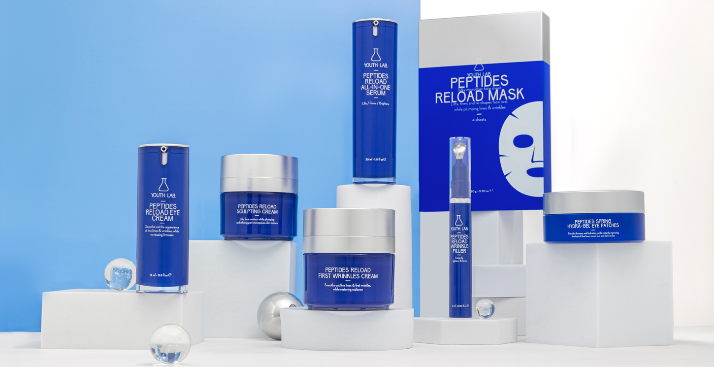 Η επιστημονική ομάδα της YOUTH LAB. αναγνωρίζοντας τη σπουδαιότητα των Πεπτιδίων -δομικό υλικό των συστατικών του δέρματος, όπως είναι το κολλαγόνο και η ελαστίνη- σχεδίασαν τη σειρά Peptides Reload, με σκοπό την ενεργοποίηση των φυσικών μεταβολικών διαδικασιών της επιδερμίδας. Αποτέλεσμα; Η πρόληψη των πρώτων γραμμών και ρυτίδων, αλλά και η αντιμετώπιση των ορατών σημαδιών γήρανσης, όπως βαθιές ρυτίδες, έλλειψη όγκου και πυκνότητας της επιδερμίδας.