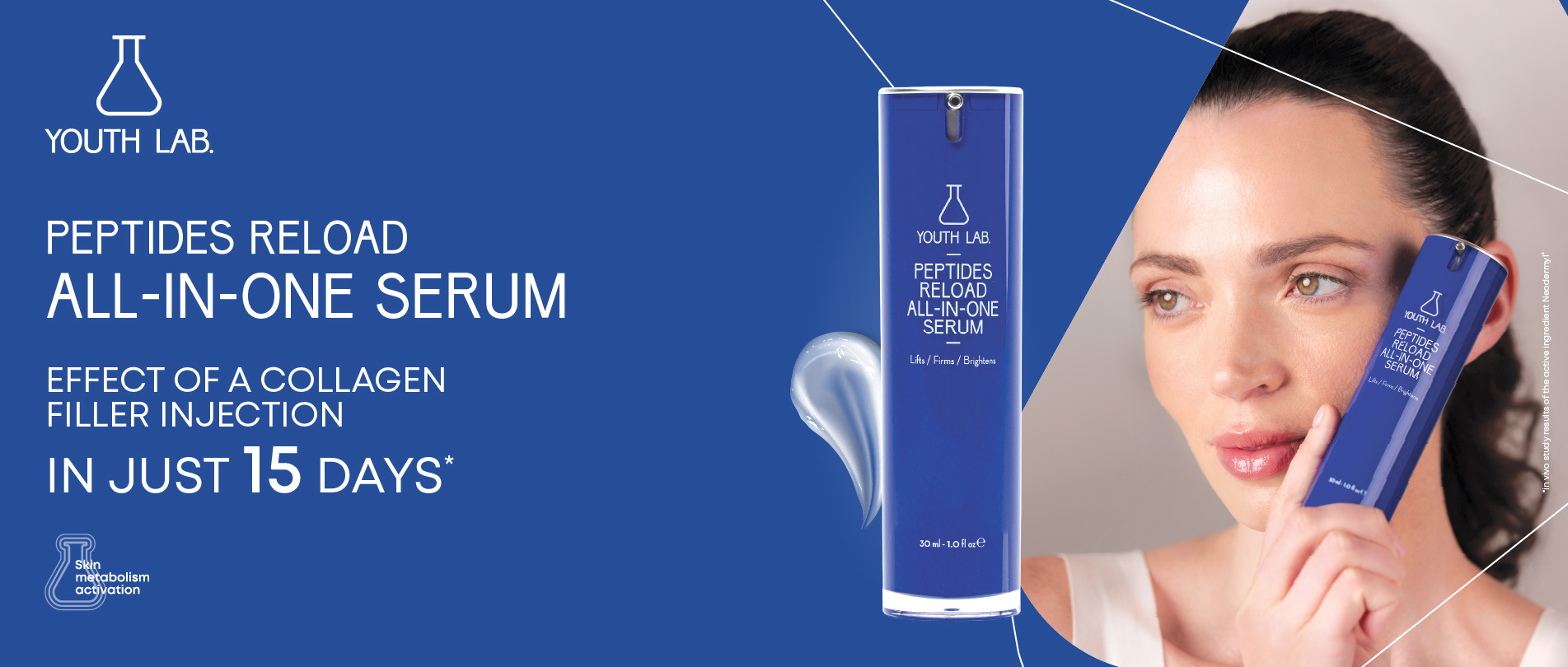 The scientific team of YOUTH LAB., having recognized the importance of Peptides –a structural material of skin components, such as collagen and elastin– has designed Peptides Reload range, aiming to activate skin’s natural metabolic processes. The result? Preventing fine lines and wrinkles, but also addressing visible signs of aging, such as deep wrinkles, lack of skin volume and density.
